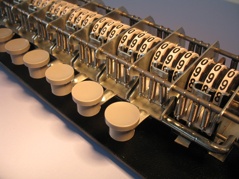 Blood cell counters are sensitive mechanical counters with metal base, shaft, springs and dividers. The keys, number wheels and gears are made of hard plastic. Dropping and mishandling blood counters can cause misalignment in the dividers and other internal components, resulting malfunction.