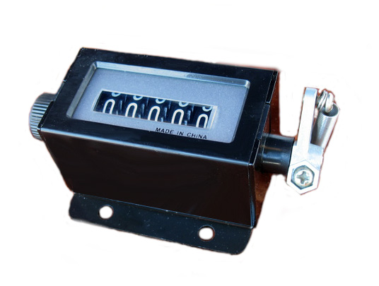 This modestly priced mechanical stroke counter provides a convenient 5 digit readout of up to 999999. This counter may be mounted on stamping machines, printing machines, packaging machines and any other machine with a turning wheel or moving arm. The spring attached to the mechanical arm prevents excess force on the mechanical arm of the counter.