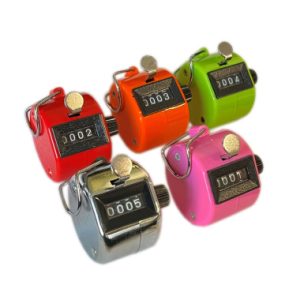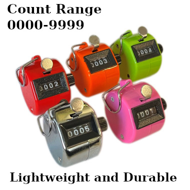 Count anything with the mechanical tally counter – no batteries required. Counts up to 9,999 laps, runs, goals, strokes, overs, hits, people, goods delivered, and more. Reset knob in one side with metal ring for secure holding in hands. Suitable for business, pleasure, and many sports.