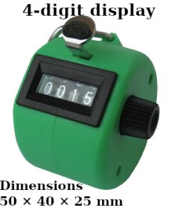 - Counts up to 9,999 laps, runs, goals, strokes, overs, hits, people, goods delivered, and more